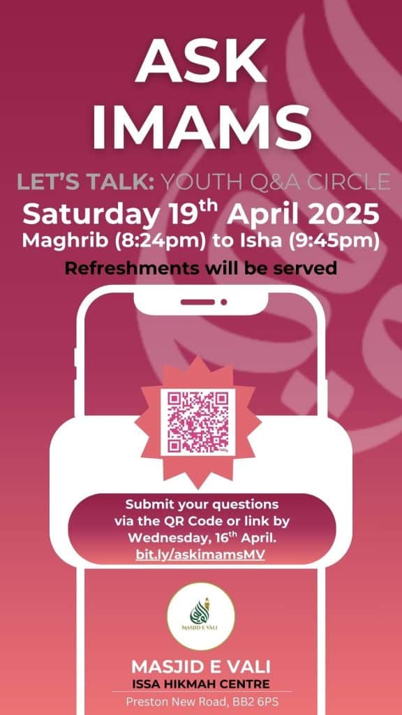 πŸ“ Location: Masjid E Vali, Issa Hikmah Centre, Preston New Road, BB2 6PS